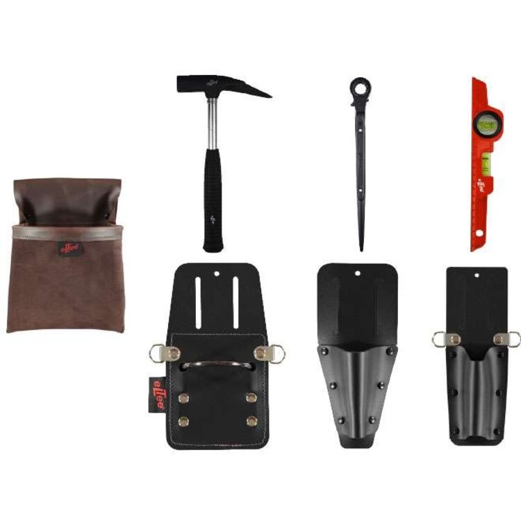 Beoordeel Steigerbouwset 7 delig met torpedo waterpas - Duurzaam leder - type SCS-DT