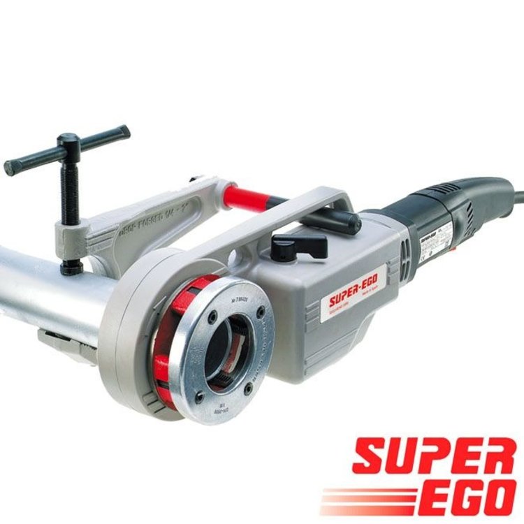 Draadsnijmachine Supertronic 2000. Met deze machine kunt u eenvoudig en nauwkeurig schroefdraad snijden op buizen. Zeer smalle draadsnijkop, zodat de machine ook op moeilijk bereikbare plaatsen kan worden gebruikt. Te gebruiken in combinatie met de snijkoppen van Super-Ego. Buishouder is aan te raden bij gebruik van deze machine.