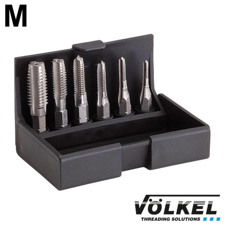 Schroefdraadsoort: ISO metrisch draad DIN 13, Tapbits: M 3 - 4 - 5 - 6 - 8 - 10, Materiaal: HSS-G, Verpakking: Kunststof cassette, Merk: Völkel