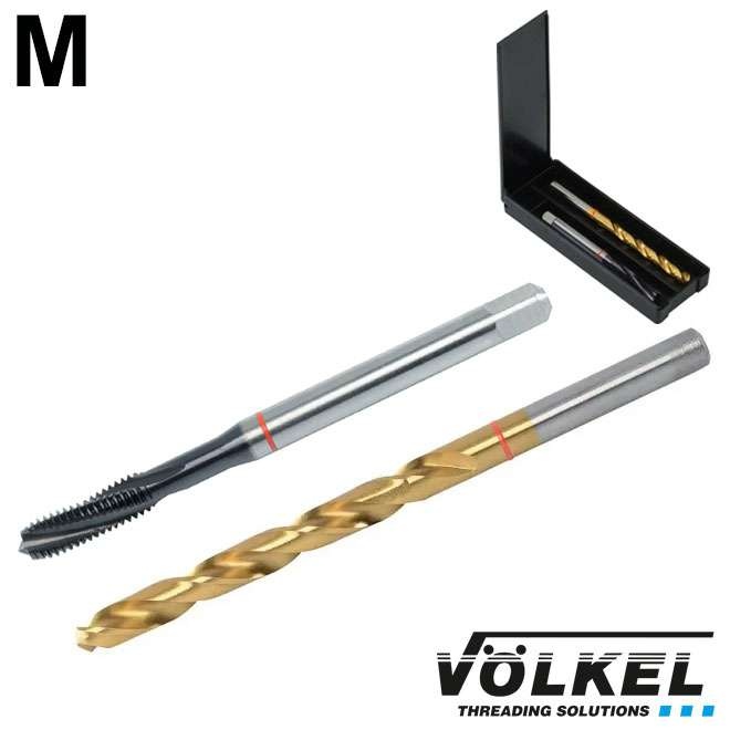 Twinbox met kleurring-machinetap en spiraalboor ROODRING voor gebruik in kortspanig materiaal vanaf een treksterkte van 1200 N/mm² en voor moeilijk te bewerken materialen zoals bijvoorbeeld voorgeharde materialen. Geschikt voor blinde gaten, en machinaal gebruik. Door de bijzonder robuuste uitvoering van poedermetallurgisch HSSE-PM-staal van het speciale groefprofiel is deze tap geschikt voor extreme toepassingen. De TiALN-coating verhoogt de oppervlaktehardheid van de tap aanzienlijk en vermindert de weerstand aanzienlijk. De korte aansnijding van 2-3 gangen maken het tappen van blinde gaten tot bijna in de bodem van het gat mogelijk. De vorm van de tap zorgt ervoor dat de spanen naar boven geleid worden.